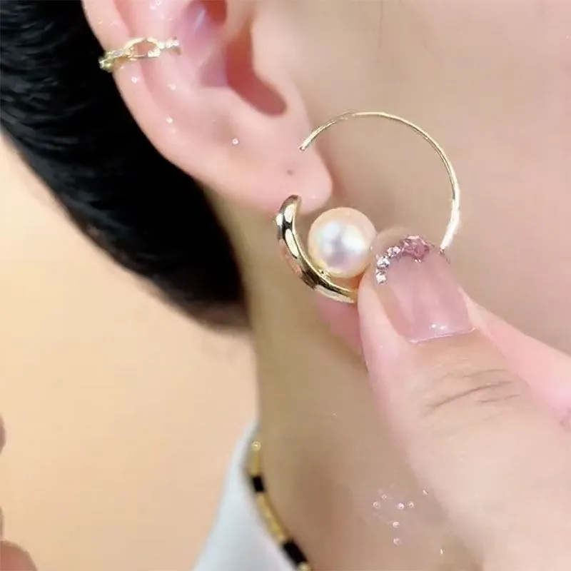 Pearl Hoop Women's Vintage Earrings